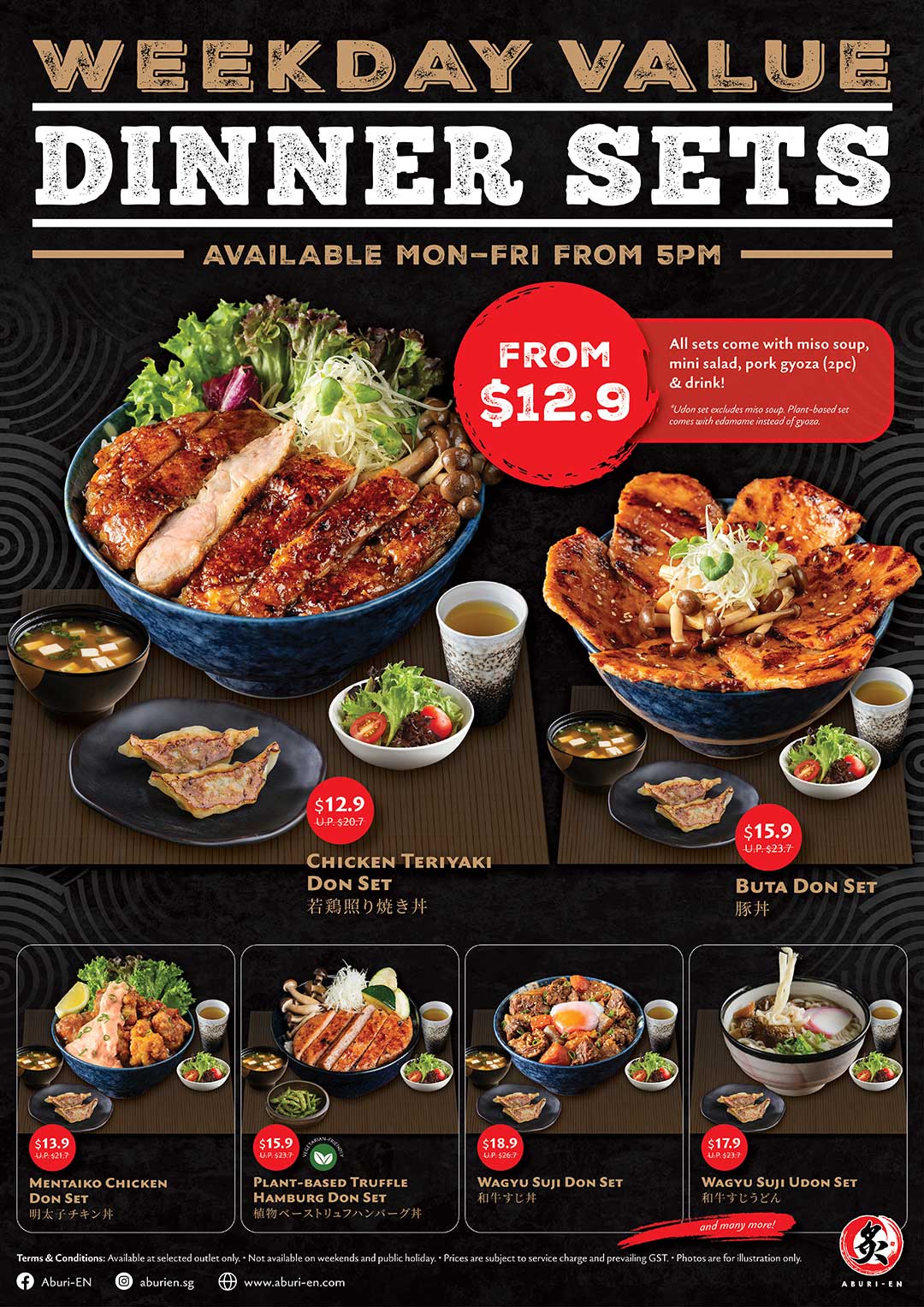 Dinner Sets From $12.90 (Mon–Fri from 5pm) Aug 23, 2025 *Available at Changi City Point & Guoco Tower View Menu